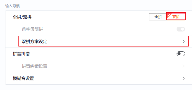 然后选择你想要的双拼方案
